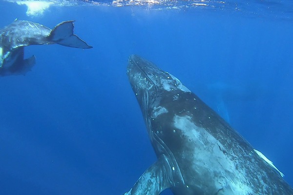 | O野さんの2日目。 来沖前にワイドレンズを持って行くかどうかを相談されたのですが、 「それなら是非持って来てクジラを見に行きましょう!」と、予定を急遽ホエールスイムツアーに切り替えました。
